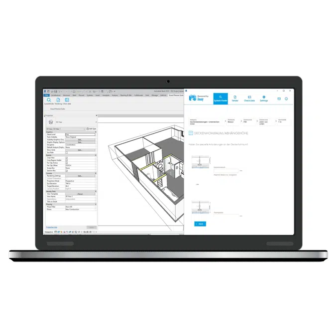 You can use Knauf Systemfinder either as a browser-based web application in myKnauf or as a plug-in for ArchiCAD or Revit. Note, however, that some functions (e.g. model-based data checking and quantity takeoff) are only available in the Plug-in.