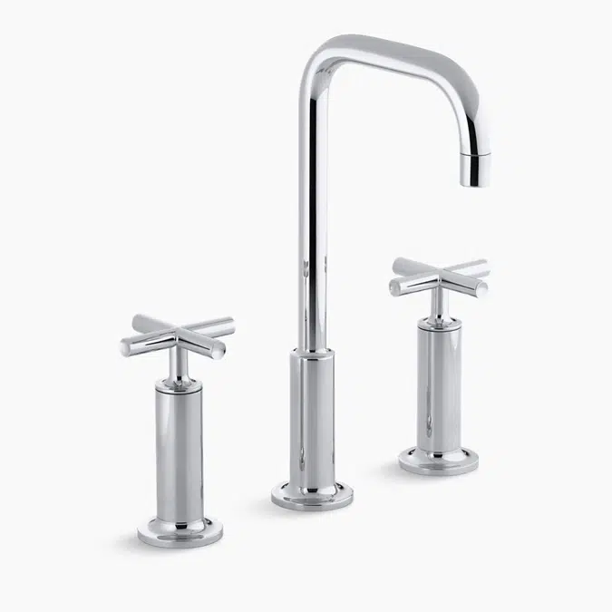 Combining architectural forms with sensual design lines, Purist faucets and accessories bring a touch of modern elegance to your bathroom. This sink faucet exemplifies the Purist collection's understated style, with its high gooseneck spout and high cross handles. Easy-to-install and leak-free UltraGlide(TM) valves provide reliable performance and durability. And the spout features laminar flow, which helps conserve water while preventing splashing.