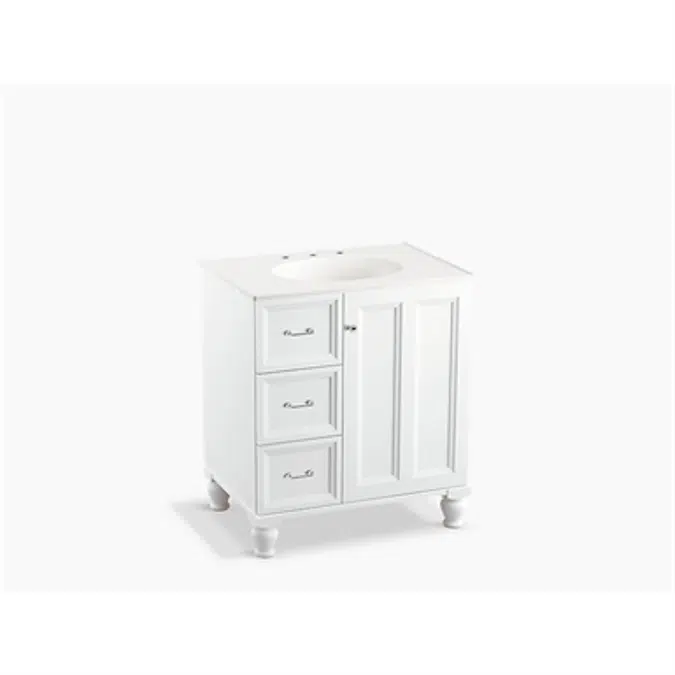 Breathtaking design meets unrivaled craftsmanship in the KOHLER® Tailored vanity collection. No detail was overlooked in the meticulous crafting of this collection, from the premium hardwoods to the specially designed hardware and vanity tops, all available in an array of finishes to create your own look. This Damask vanity cabinet reflects the rich details found in colonial American architecture. Complete your bathroom vanity with a coordinating top, hardware, and accessories from the collection.