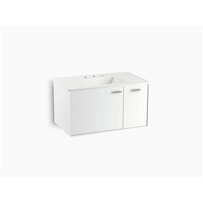 Breathtaking design meets unrivaled craftsmanship in the KOHLER® Tailored vanity collection. No detail was overlooked in the meticulous crafting of this collection, from the premium hardwoods to the specially designed hardware and vanity tops, all available in an array of finishes to create your own look. This Jute bathroom vanity combines the warmth of wood with a sleek wall-hung installation for a fun play on mid-century modern design. Complete your vanity cabinet with a coordinating top, hardware, and accessories from the collection.