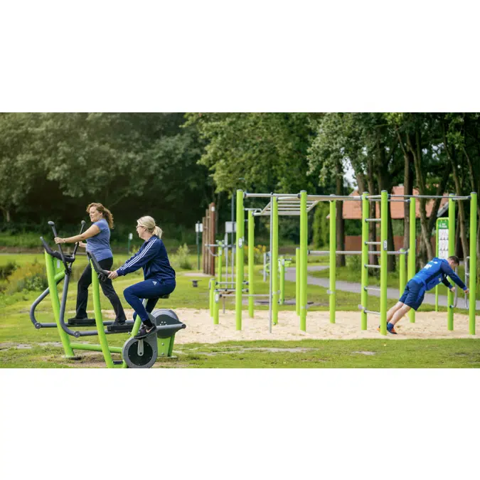 KOMPAN has created adjustable, interactive Cardio equipment which is at the same level of quality and impact you would expect from equipment from an indoor fitness center. The City bike is all about comfort. The entry is extremely low and the frame provides an upright riding style. The city bike saddle can be adjusted in height and is wide, providing a comfortable ride for people of all sizes. The patented, self-powered resistance units creates a real road cycle experience. The resistance can adapt automatically, depending on the pedaling speed, or the users can choose to manually change the resistanceon the 7'' touchscreen or on the KOMPAN App.
