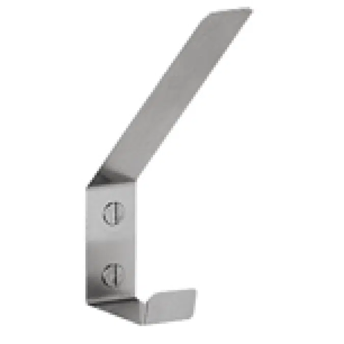Double cloth hook for wall mounting, stainless steel grade 304L, surface satin finished, two drilled holes for fixation, includes stainless steel screws and dowels.