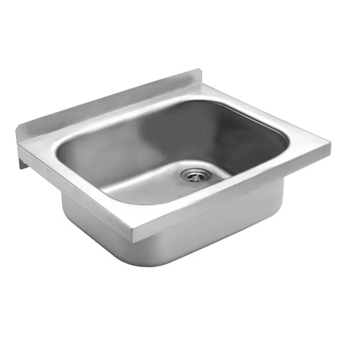 General purpose sink for wall mounting, stainless steel, surface satin finished, material thickness 1.2 mm, seamless welded bowl with dimensions 420 x 400 x 170 mm, rounded edges, 1 1/2" plug waste, drainage back right, 40 mm rear upstand, inclusive stainless steel screws and dowels. Without folding grid Dimensions 500 x 215 x 400 mm (W x H x D)