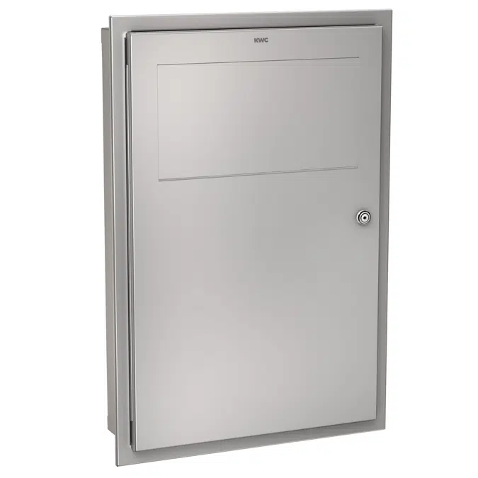 Waste bin for recessed mounting, stainless steel, surface satin finished, material thickness 0.8 mm, folding self closing lid, with integrated bag holder, cylinder lock with Franke standard key, includes stainless steel screws and dowels. Capacity approx. 13 liters Dimensions 395 x 580 x 110 mm (W x H x D)