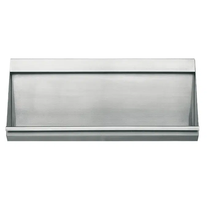 Urinal slab, stainless steel AISI 316, surface satin finished, material thickness 1 mm, flushing water demand 0,15l/sm, with covered flush pipe. Middle positioned slanted waste G1 1/2 B for connection to the syphon, included wall fixing brackets and mounting set.