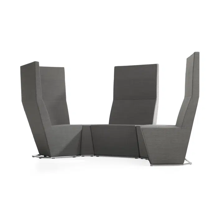 This modular seating series with its six different modular units inspires to creative and flexible seating solutions. Use them separately or in groups to create exiting configurations. Two-, three- or even more seater sofas are easily created. The innovative linking device, Quicklink, consisting of built-in magnets makes the units easy to regroup. The airy table in perforated sheet metal makes a perfect complement to the upholstered units. The high back version offers a feeling of seclusion in open areas and enables building a soft, sophisticated room within the room.