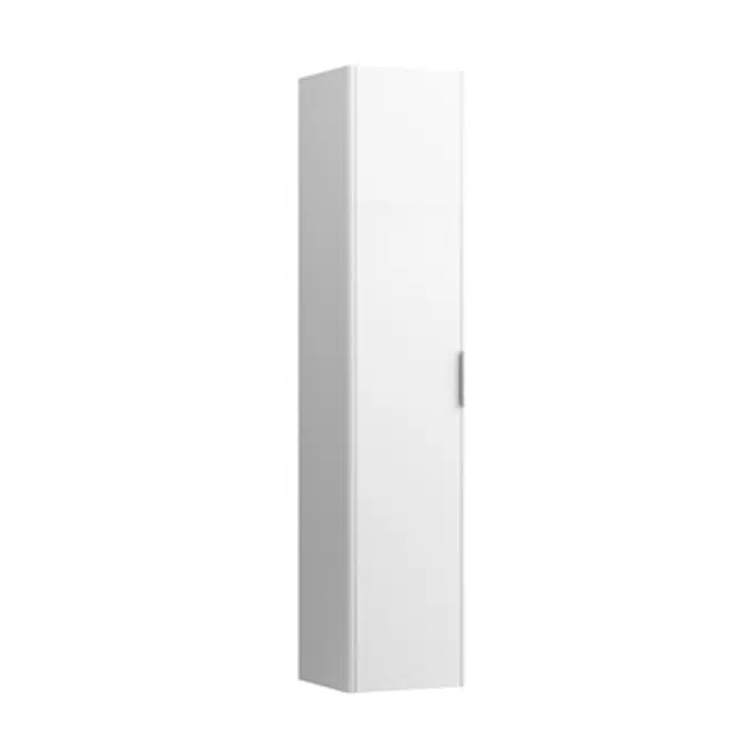 Tall cabinet, 1 door, right hinged, 1 fixed shelf, 4 glass shelves, design matches vanity units