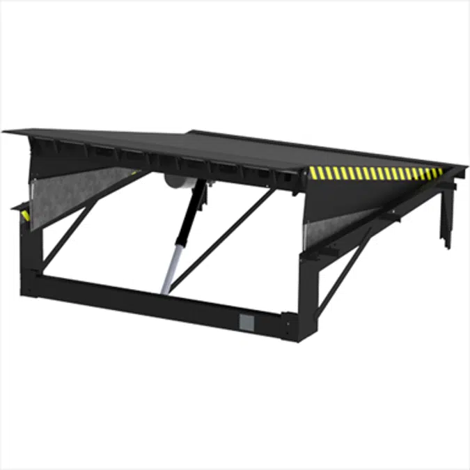 Platform and lip are made from high-quality Durbar plate. Depending on the width, the dock leveller 232 60 kN is strengthened along its length by means of 10-12 set profiles. The rear of the top platform is connected to the lower frame by means of 14 laser-cut hinges. These hinges can easily withstand the applied forces. Similar pins are used for the lip hinge at the front of the platform top.
