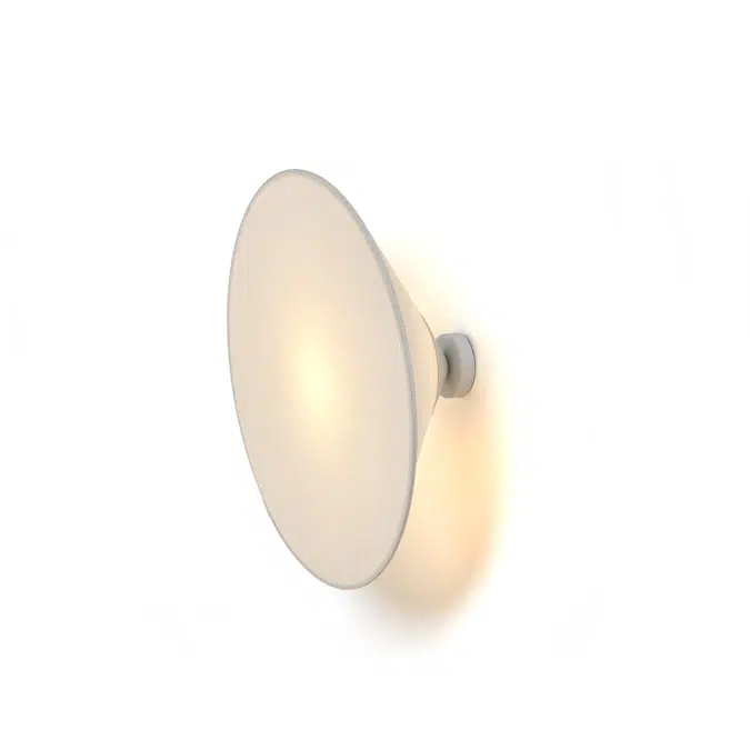The lamps from the Cim collection are made with light materials for its shades and the generous dimensions of its conical volume give personality to the collection. The light projected by the shade and the diffuser in a single element reminds us of the most professional lighting environments. The atmosphere resulting from this combination is the main remarkable factor of this design. In its different versions, hanging lamp, wall lamp and ceiling lamp, the continuous plane of its diffuser is slightly perceived and the direct light projected is uniform, without any stridency. The shadows resulting from this are soft. In contrast, the ambient light emitted by the shade generates a serene, friendly and relaxed atmosphere that warms the entire environment.