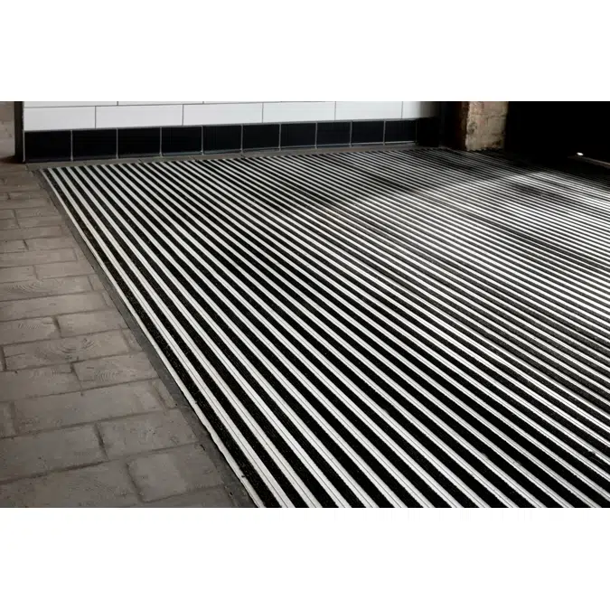 Dual-strip design scrapes off debris and absorbs moisture. Reversible design doubles life span. Withstands heavy foot traffic and wheeled loads. Numerous design and color options. Anti-slip surface; ADA Compliant. Specific configurations available for Zone 1. Available in Gray, Charcoal, and Unbuffed.