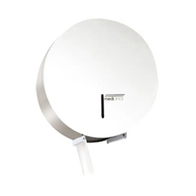 Part numbers: PR0789 These models are designed and manufactured by Mediclinics in steel 0.8 mm thick and they are available in white epoxy finish. They have been thought to be used in restaurants, offices, hospitals, etc. and provide value added to the design. All of these are capable of holding 3 standard toilet paper rolls or a Ø275mm industrial paper roll. The 3 standard toilet paper rolls option, includes an automatic mechanism, based in a revolvering mechanism, which causes the next roll to drop once the bottom roll has been used. Ø275mm industrial paper roll option has an axis with anti-spin brake by inertia, to ensure a more rational use of the paper. With anti-vandalism features, all of these include a special key for opening the casing.