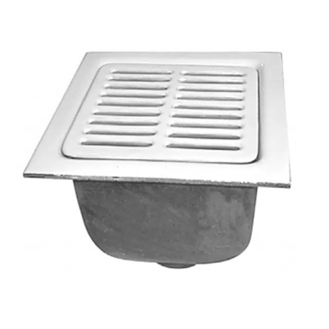 MIFAB® FS740 Series 12” x 12” x 10” deep cast iron floor area and indirect sanitary waste drain complete with white acid resistant porcelain enamel coated interior and loose set grate. Anti-splash aluminum dome strainer included.
