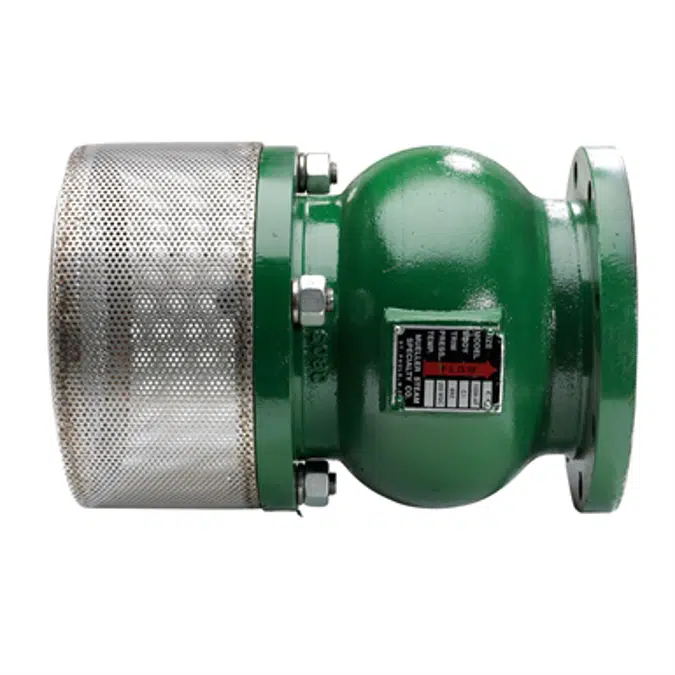 Series 105MAP-FV Class 125 Cast Iron Globe Check Style Foot Valve Assemblies are designed for use at the intake side of a suction pipe and pump. The check valve opens when the pump is started, allowing liquid to enter the suction pipe and prime the pump. It closes as the pump stops and before a reverse flow condition develops. The prime to the pump is therefore maintained, eliminating the need to prime the pump each time it is started. Built-in strainer removes unwanted debris for the intake, protecting the pump from damage.