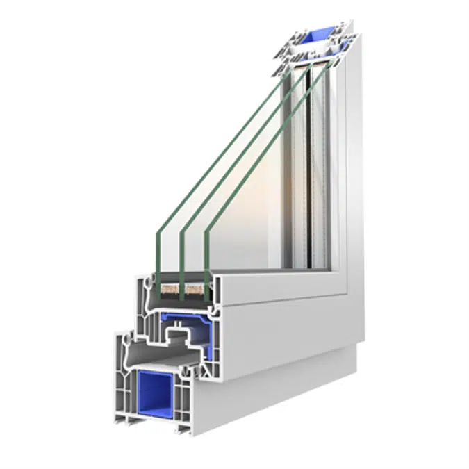 • Slim and elegant 6-chamber frame and sash profiles in class A with a depth of 70 mm.