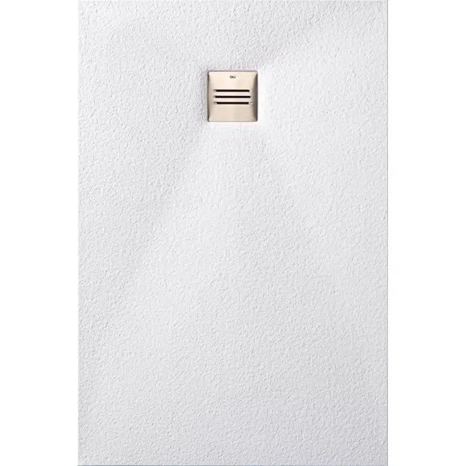 Stone-textured shower tray, available in black and white, with a total height of 26mm and a brushed stainless-steel grate (AISI304).