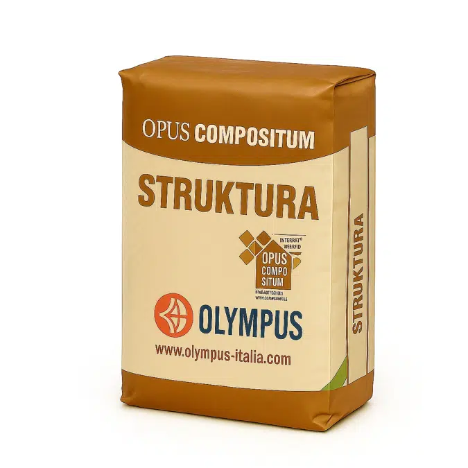 OPUS COMPOSITUM STRUKTURA 15 is a fibre-reinforced structural plaster in powder form, pre-mixed and based on pure natural hydraulic lime NHL 5. It is environmentally friendly and breathable, compliant with EN 459-1. Suitable for interior and exterior use, for manual or machine application. Easy to use, especially recommended for restoration and construction works of historical and artistic value. It offers excellent adhesion to substrates, high water vapour permeability, and sets with low internal stress. Its specific formulation makes it non-toxic, sulphate-resistant, low in soluble salts, and mechanically strong. The caustic environment of the matrix enhances indoor comfort by creating aseptic conditions. s fields of application it is suitable for interior and exterior walls and ceilings of civil buildings and structures of historical or architectural significance. Can be used both as bedding mortar and as structural render for strengthening masonry walls.