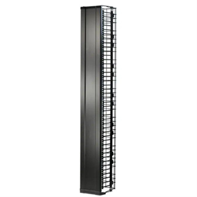 • Vertical cage with individual rack unit fingers: Provides organized method for routing and storage of patch or cross connect cable between racks.