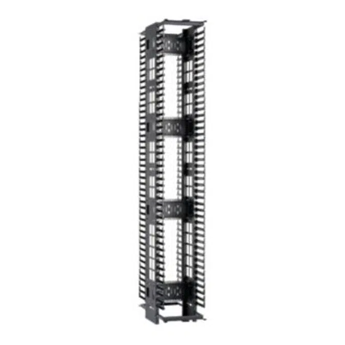 The Panduit® PatchRunner® High Capacity Vertical Cable Manager organizes, protects and showcases high-density cabling for the latest high-performance enterprise switching equipment. Not only do wide and deep features provide for Category 6A cables, but Integral EIA zero RU mounting capabilities also allow equipment to be patched to the manager, freeing up valuable RU space. Dual-sided, Steel, 45RU, Black, 1pc.