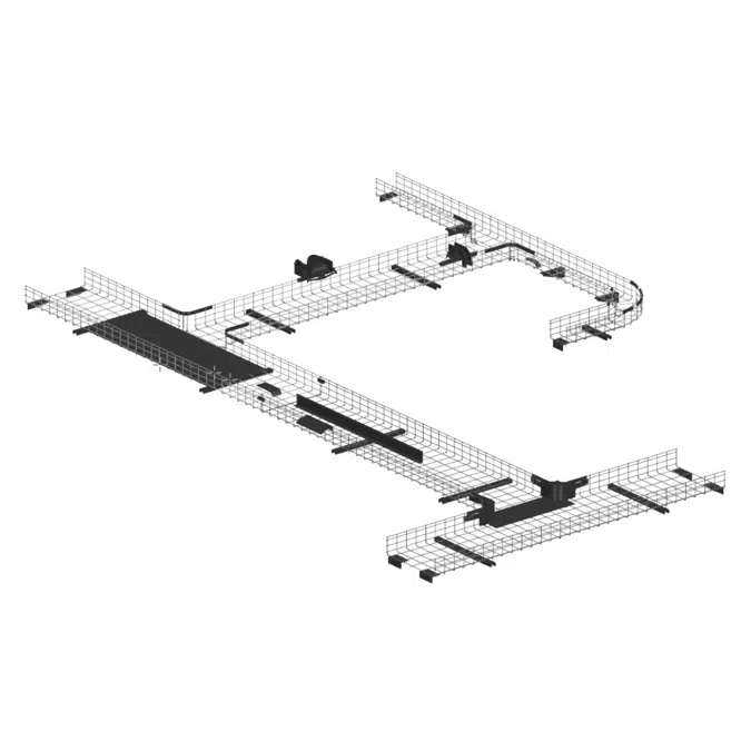 The Panduit Wire Basket overhead cable tray routing system consists of pathway sections, splice connectors, sidewalls, waterfalls, mounting brackets, and accessories designed to route and manage copper, fiber optic, or power cables. The pathway sections come in various widths: 4", 6", 8", 12", 18", 24". The baskets come in various wall heights: 2", 4", and 6" heights. Trapeze, cantilever, and wall mount brackets are available to support the system. Baskets, accessories, and components are available in black, electro zinc, and white.