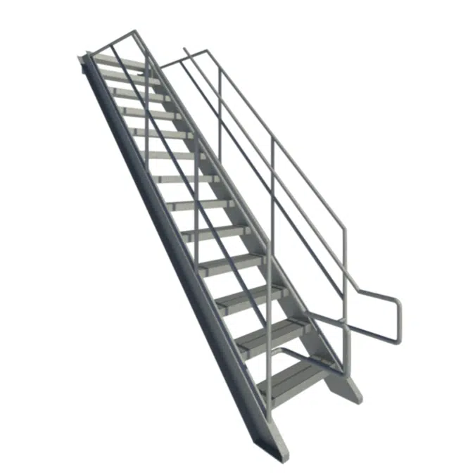 3. Degree of Incline: 30 to 45 degrees. Stairs have uniform riser heights and tread depths between landings. Not all degrees are available for every height.