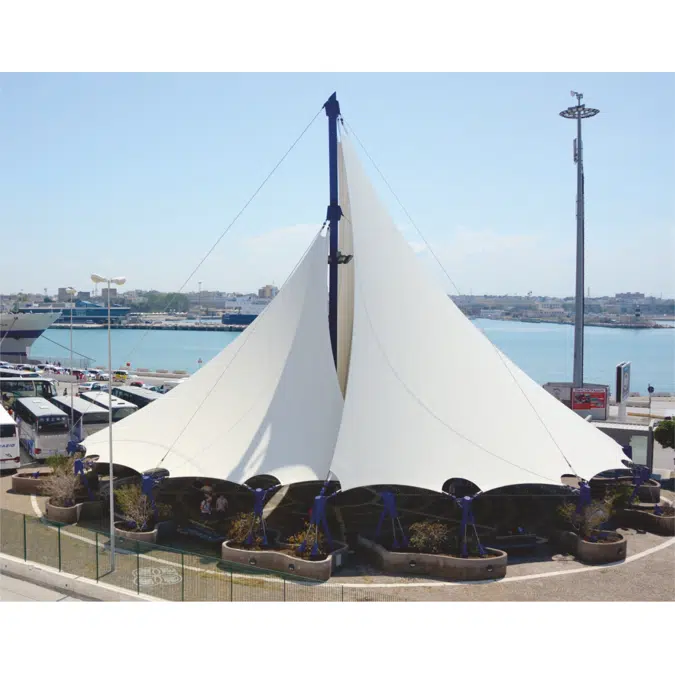 Specially designed for making pergolas, coverings and exterior textile architecture.