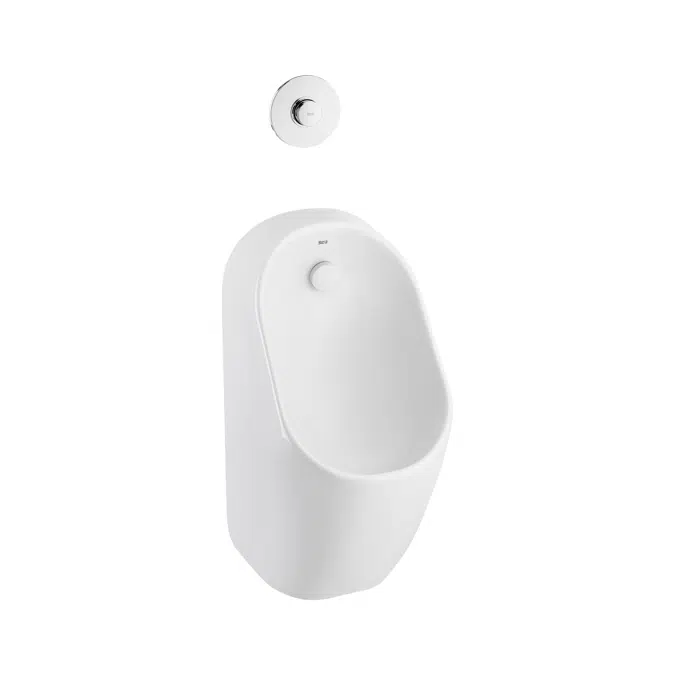 Rimless vitreous china urinal, back inlet Its minimalist design, continuous lines and rounded edges create an exceptional design. Hidden fixations for a more compact design. Rimless urinal with water distributor that allows for easier cleaning. Waste cover with vandal-proof fixation.