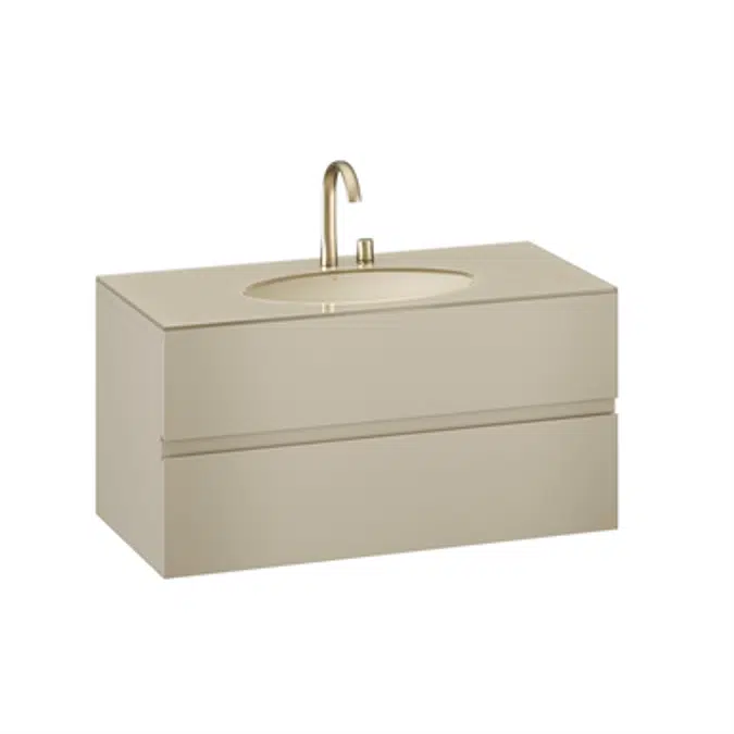 • Complementing the rest of the collection, this wall-hung vanity offers stylish and functional solutions for all types of spaces and storage needs. This furniture, designed for use with under-counter washbasin (Ref. A327762..0), features an exquisite tinted glass countertop with two 30.5 mm holes for brassware. This 1200 mm model for double under-counter basins incorporates two soft-close drawers: the upper drawer offers greater storage capacity thanks to the siphon space-saving system and several compartments, while the lower drawer can be customized by adding different-sized organization containers and trays designed specifically for this purpose (Ref. A856540128, Ref. A856541128 and Ref. A856542128). Both drawers feature a soft-close system to ensure a gentle, quiet close and heightened safety. Available in three stunning finishes to allow you to create a sleek bathroom area in which every last detail is impeccable coordinated: the distinctive Silver finish is uniquely refined, the neutral Greige is elegant and discreet, and the Nero finish adds a bold, contemporary touch of understated sophistication. Enhance the aesthetic harmony of your vanity unit with the addition of the elegant Island single side lever washbasin mixer (Ref. A5A3876..0), which comes in four finishes: shiny Chrome creates a fresh, modern look; warm Greige lends a discreet, sophisticated air; the Nero finish adds a bold, contemporary feel; and Brushed Steel brings a unique, industrial finish to the bathroom space.