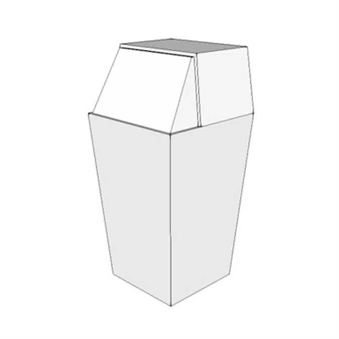 Metal receptacle for soiled / used towels or waste. Equipped with a removable tapered top with two independently operating self-closing, spring hinged doors. Used in public facilities for the collection and temporary storage of refuse.