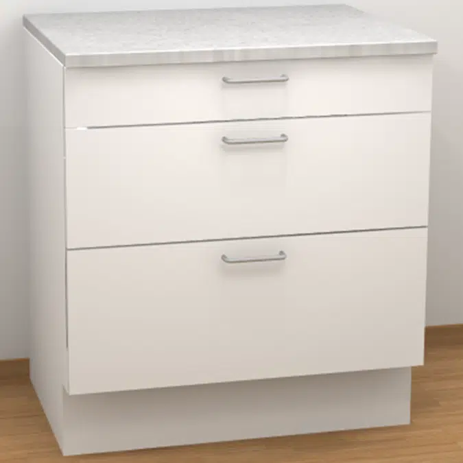 • Base cabinet with 3 drawers. Full-extension drawer with built-in dampers.
