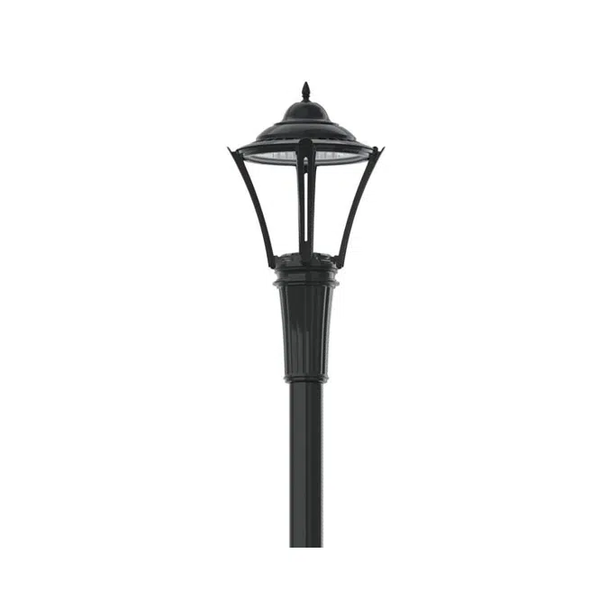 The Lumec MetroScape LED post-top luminaire features flexible, robust energy-saving solutions for heritage-styled urban architectural lighting. Crowned with an ornamental hood, the post-top model comes with a flat lens to highlight the thinness of the LEDs. The luminaire provides attractive lighting at night, adding appeal to the surroundings and promoting safe use of the environment.