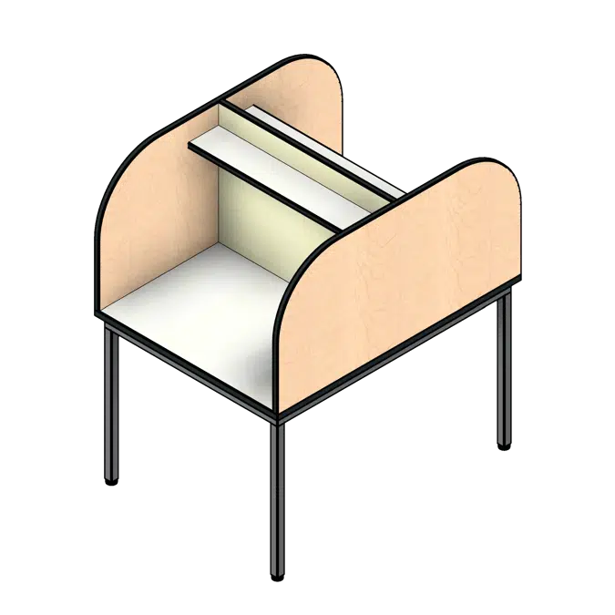 This study carrel is easy to use. Simply choose between single width (3’ 0”) or double width (6’ 0”). Another option is to have a reflected carrel by choosing single sided (2’ 0”) or double sided (4’ 0”) which will define the depths. The actual height is 53.5" and the desktop height is fixed at 29.5”. The divider panels and shelf are 3/4" thick and the tabletop is 1” thick. Our Revit models are packaged with specific and detailed information without the extra prerequisites needed of a massive file size.
