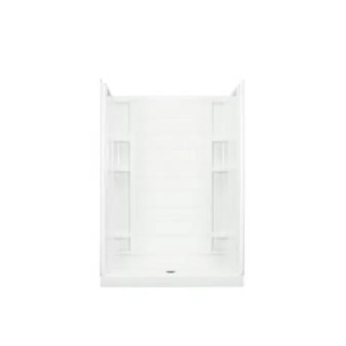 60" shower, made of solid Vikrell® material, Modular four-piece design moves around corners and through doorways with ease, Tongue-and-groove interlocking joints form a seamless appearance and simplify installation, Realistic 6" x 6" tile wall surround, Durable high-gloss finish provides a smooth, shiny surface. Convenient shelves provide generous storage, Shaving ledge/foot rest added for comfort, 10-year consumer/3-year commercial limited warranty