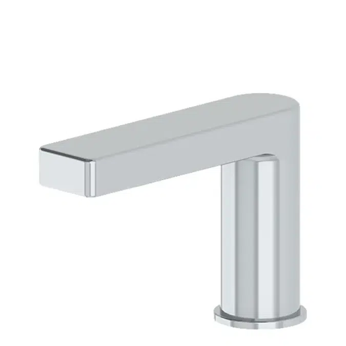 Touch-free electronic soap dispenser for deck-mounted installations. Activated by concealed sensor built into the spout. For use with any non-proprietary soap. Chrome plated body, other finishes available. Includes a 1 liter soap bottle and bottle support. With a designated