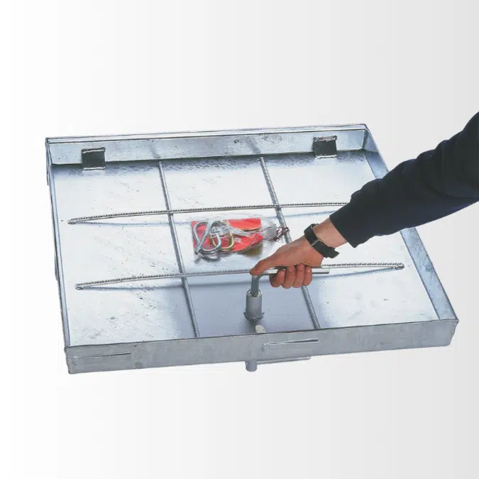 • Floor hatch type BV-GDZ: frame and cover made from 2 mm cold-formed steel; reinforced internally with cross-welded twisted steel wire Ø8/12 mm; to be filled with C35/45 concrete; visible rim 4–5 mm; high-quality chemical-resistant seal; installation height 75 mm; tray depth 50 mm; breaking load 125 kN according to EN 124; guaranteed odor- and watertight; hot-dip galvanized; easy to open/close with hex bolts; supplied complete with accessories and installation guide. Available types: BV-GDZ 55: 500×500 mm (635×635 mm, 19 kg); BV-GDZ 66: 600×600 mm (735×735 mm, 23 kg); BV-GDZ 86: 800×600 mm (935×735 mm, 29 kg); BV-GDZ 88: 800×800 mm (935×935 mm, 33 kg); BV-GDZ 106: 1000×600 mm (1135×735 mm, 33 kg); BV-GDZ 110: 1000×1000 mm (1135×1135 mm, 45 kg).