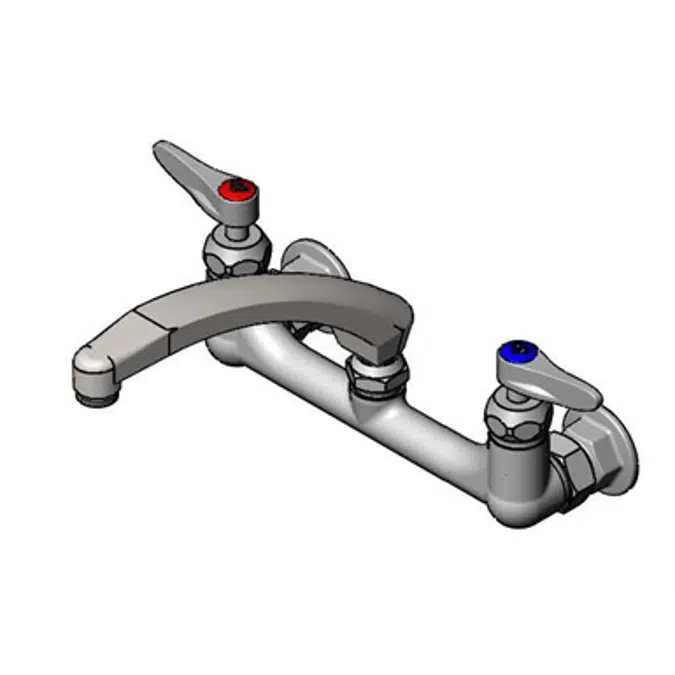 8" wall mount mixing faucet with polished chrome plated brass body, 8" cast spout with 2.2 GPM aerator, ceramic cartridges with check valves, lever handles and 1/2" NPT female inlets. Certified to ASME A112.18.1/CSA B125.1, NSF 61-Section 9 and NSF 372. Meets ADA ANSI/ICC A117.1 requirements.
