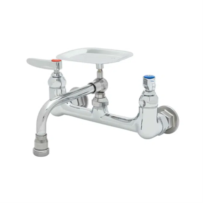 B-2489 Double Pantry Faucet, 8" Wall Mount, 6" Soap Dish Swing Nozzle, Lever Handles