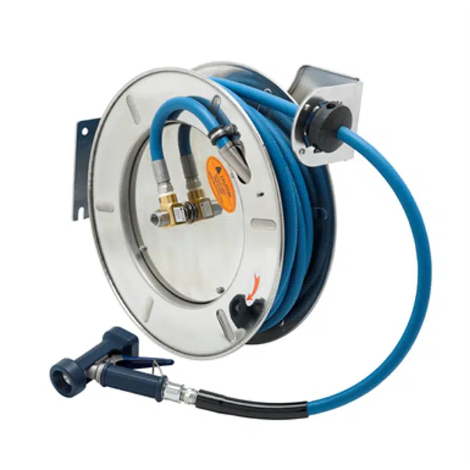 B-7143-02 Hose Reel, Open, Stainless Steel, 1/2" x 50' Hose, 5/16" Rear Trigger Water Gun