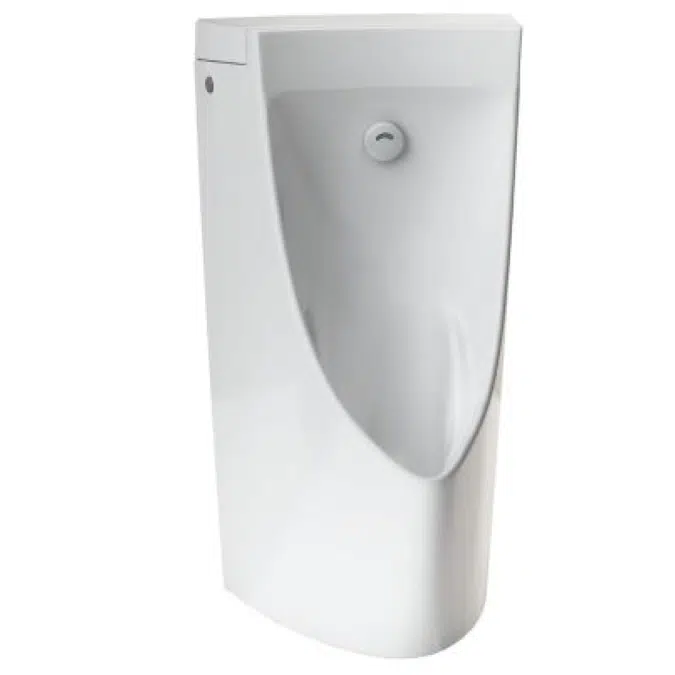 • Compact urinal with integrated flush valve and 1/2" supply connection