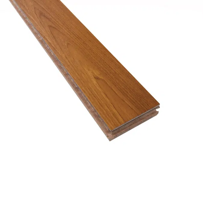HDF floor plank covered with natural wood veneer in Natural Teak pattern