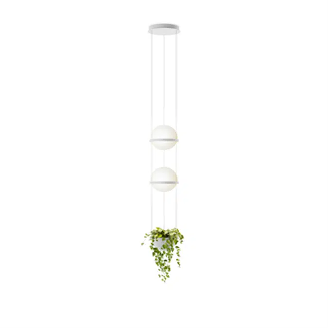 The Palma collection, designed by Antoni Arola, includes wall lights, pendants. Its timeless sphere of light evolves towards the organic. Known for its combinatation of lighting and vegitation, it includes hand blown glass spheres paired with a suspended planter. Slightly flattened like the shape of the Earth, it gives off a warm and adjustable LED light source.