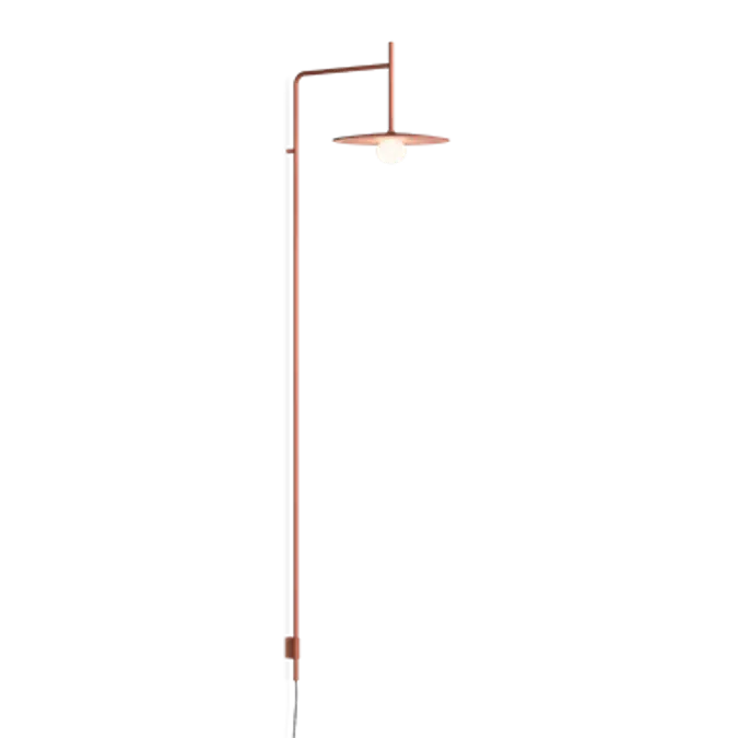 Wall lamp composed of a stylized profile attached to the wall and topped by a blown glass diffuser that gives the piece a delicate image. Connection without a plug. LED light source.