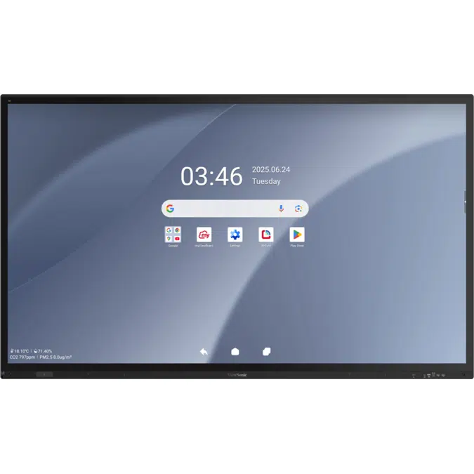 The ViewSonic® ViewBoard® IFP63 Series is a 4K UHD interactive flat panel designed for secure, high-performance collaboration in enterprise and higher education environments. With ultra-responsive 50-point PCAP touch, palm rejection, and Write Away™ technology, it enables seamless, pen-on-paper annotation—ideal for hybrid meetings, interactive lessons, and brainstorming sessions. Powered by Android 15 and EDLA-certified, the interactive display provides secure access to the latest apps and updates on a future-ready platform. An octa-core processor and 16GB of RAM support smooth multitasking for demanding workflows, while NFC tap-to-sign-in simplifies access in shared settings. Part of the ViewSonic Business Solutions, it includes three powerful software tools: Manager for remote device management, AirSync for wireless casting, and TeamOne for real-time collaboration. Designed with sustainability in mind, this display features integrated sensors that adjust brightness, monitor environmental conditions, and trigger energy-saving modes. It is certified EPEAT Gold and EEI Level F for efficient, environmentally responsible deployment.