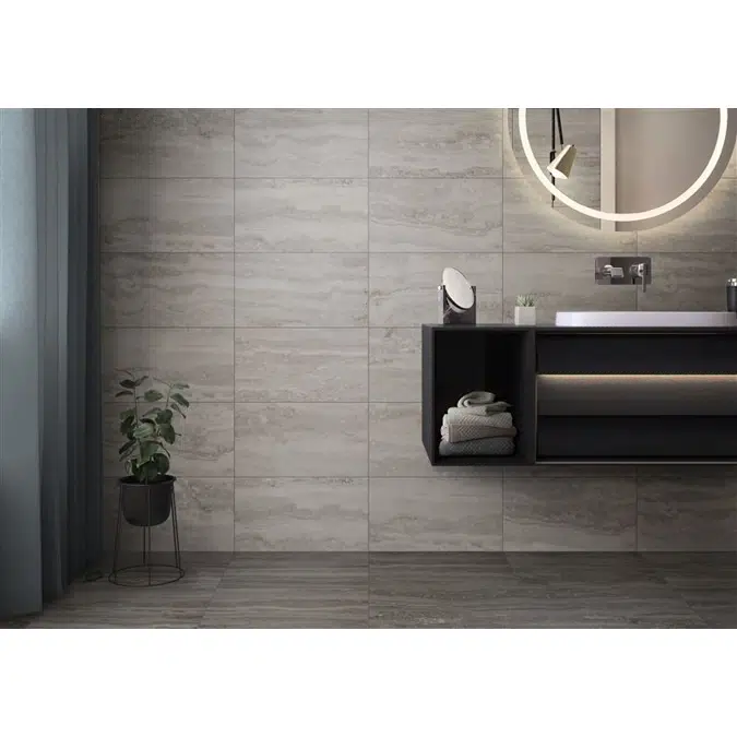 Brescia collection reflects the fluid texture and natural aesthetics of travertine on walls and floors. Travertine, one of the indispensables of architecture since ancient times, brings a Mediterranean spirit to the spaces where it is used. The collection has two different color options in light grey and grey shades. Brescia offers a floor-to-ceiling tiling solution with 25x40 wall tiles and 45x45 porcelain.