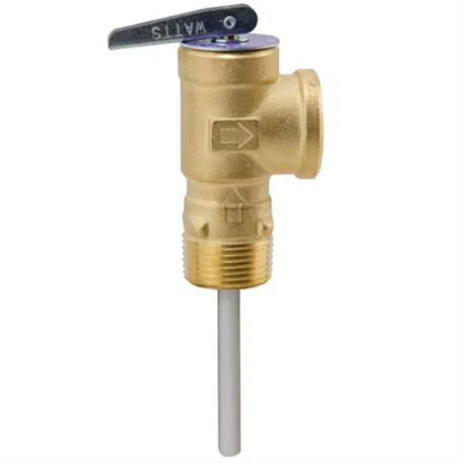 Model LF10L Temperature and Pressure Relief Valves are used in water heater and hot water storage tank applications to provide automatic temperature and pressure protection to hot water supply tanks and hot water heaters up to 80,000 BTU/hr. It features a bronze body with NPT threaded male inlet and NPT threaded female outlet connections, unique thermostat with special thermo-bonded coating and a test lever. Model LF10L is ASME rated and CSA listed. Temperature Relief: 210°F (99°C), Pressure Relief Range: 75 to 150psi (5.2 to 10.3 bar), Standard Pressure Settings: 75, 100, 125, or 150psi (5.27, 7.03, 8.79, or 10.55 bar).