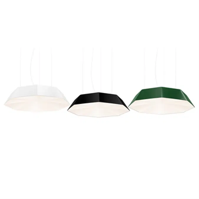 • Finish: Matt opal acrylic, painted Pure white Ral 9010, Graphite black 9011 or Opal green Ral 6026. Other colors on request. Available in two versions: Painted top or partly painted top with 30% upplight. LED information: System power: 38W. Luminaire Luminous Flux: 2903LM. CCT 3000K. SDCM 3. CRI 80. Installation: Wire pendant. Connection: Terminal block 3x2,25mm when HFF cable without plug. Design: Monica Förster 2009.