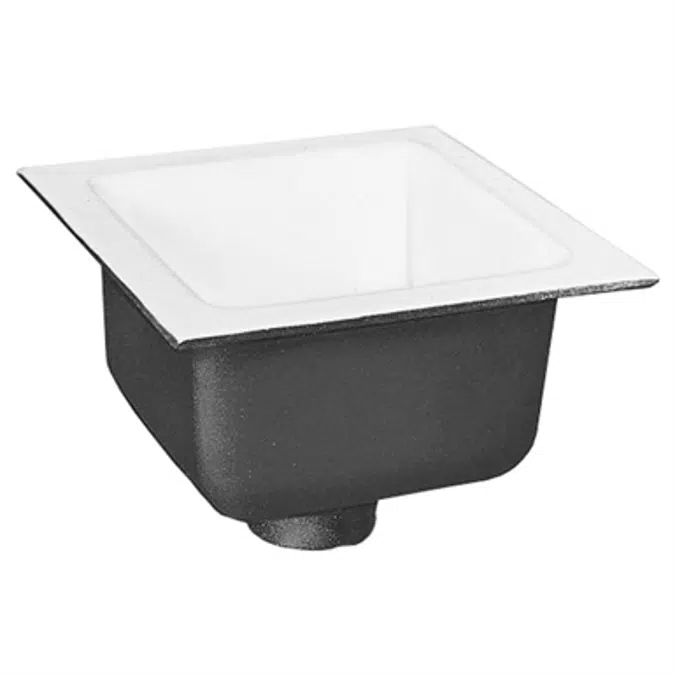 12" x 12" Square top with 6" sump depth is recommended for sanitary installation. Cast iron body with white acid-resisting porcelain enamel interior and ABS anti-splash dome strainer