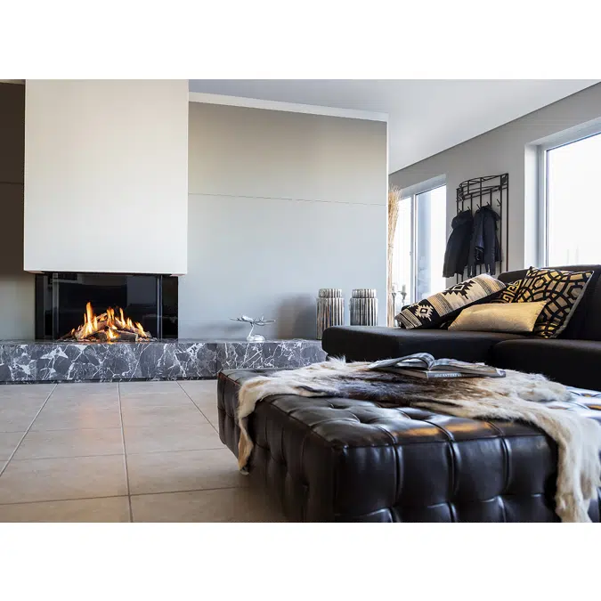 El GP85/55S ofrece una vista amplia y abierta de la llama, lo que lo convierte en el punto focal perfecto para espacios habitables. Su diseño de tres lados permite disfrutar del fuego desde múltiples ángulos, realzando la atmósfera de cualquier habitación.