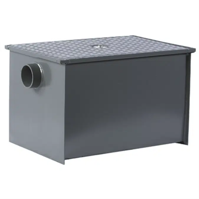 Watts Drainage Serie WD Interceptor de grasa de acero revestido de epoxi montado en el piso o empotrado certificado por PDI con cubierta antideslizante de acero revestido de epoxi con juntas asegurada con perno(s) central(es) de cabeza hexagonal, conjunto de deflector extraíble, trampa de sello profundo con limpieza, accesorio de control de flujo de hierro fundido externo , y sin conexiones hub (estándar)