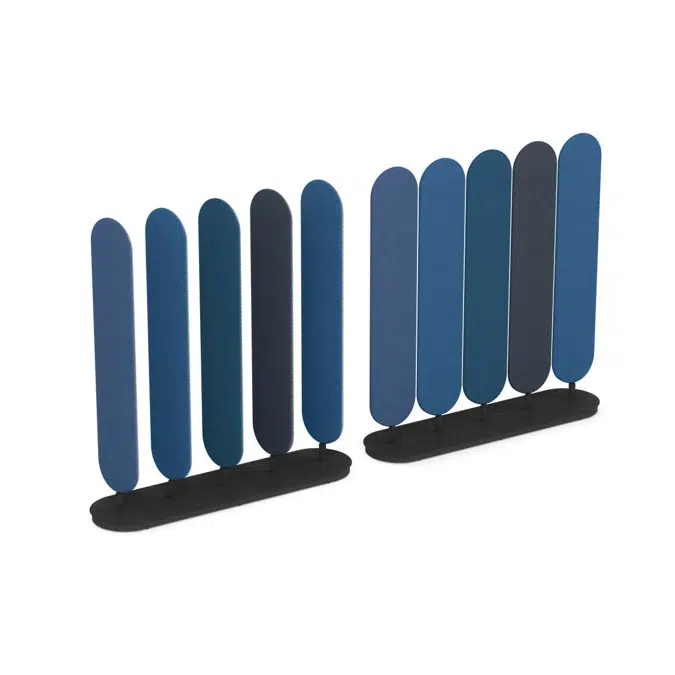 Comme les persiennes de fenêtre permettent aux habitants de contrôler la quantité de lumière qui filtre dans la maison, l'écran tournant du Louvre fait de même avec le son et la vue. Élément mobile autonome avec 5 vantaux tournants simultanément, Louvre offre une réduction du bruit à la demande et un sentiment d'intimité entre 2 meubles. Un aspect festonné avec une panachure de couleurs le long des 5 feuilles confère une impression de douceur ludique.