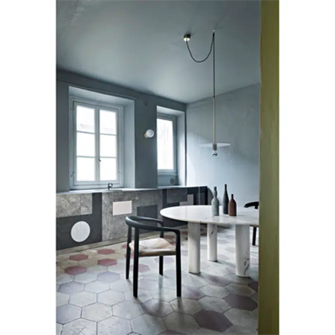 La pierre est la vedette de ces tables conçues par Michael Anastassiades dans le but précis de mettre en valeur l'opulence des marbres choisis pour sa collection « Love Me, Love Me Not ». Dans les mots de Michael Anastassiades « Je voulais utiliser des couleurs royales qui transmettaient un sens du grandiose, à travers la somptuosité associée au marbre. En même temps, je ne voulais pas submerger l'œil et il fallait donc trouver un équilibre entre cette richesse et la fonctionnalité et la légèreté des tables ». Au lieu de l'aspect très poli souvent associé au marbre, le designer a choisi une finition mate afin d'apporter une touche plus contemporaine à la pierre, soulignant ses qualités spécifiques à travers ce processus discret. La simplicité de chaque tableau est trompeuse. Par exemple, si nous prenons les pieds, ceux de la table à manger rectangulaire ressemblent à un pied classique à quatre coins, mais si vous regardez attentivement, vous verrez qu'ils sont en fait courbés. Cela a pour effet non seulement de réduire le volume physique, mais aussi de créer une sensation de recul de la jambe. Et, sur le plan pratique, il élimine les arêtes vives sous la table qui pourraient entrer en contact avec la cuisse une fois que vous êtes assis près de la table. Pour la table ronde, Michael a placé les trois pieds juste assez loin pour assurer la stabilité, mais encore une fois en créant un maximum de confort pour les personnes assises. Veuillez noter que nous ne recommandons pas de placer ces tables à l'extérieur.